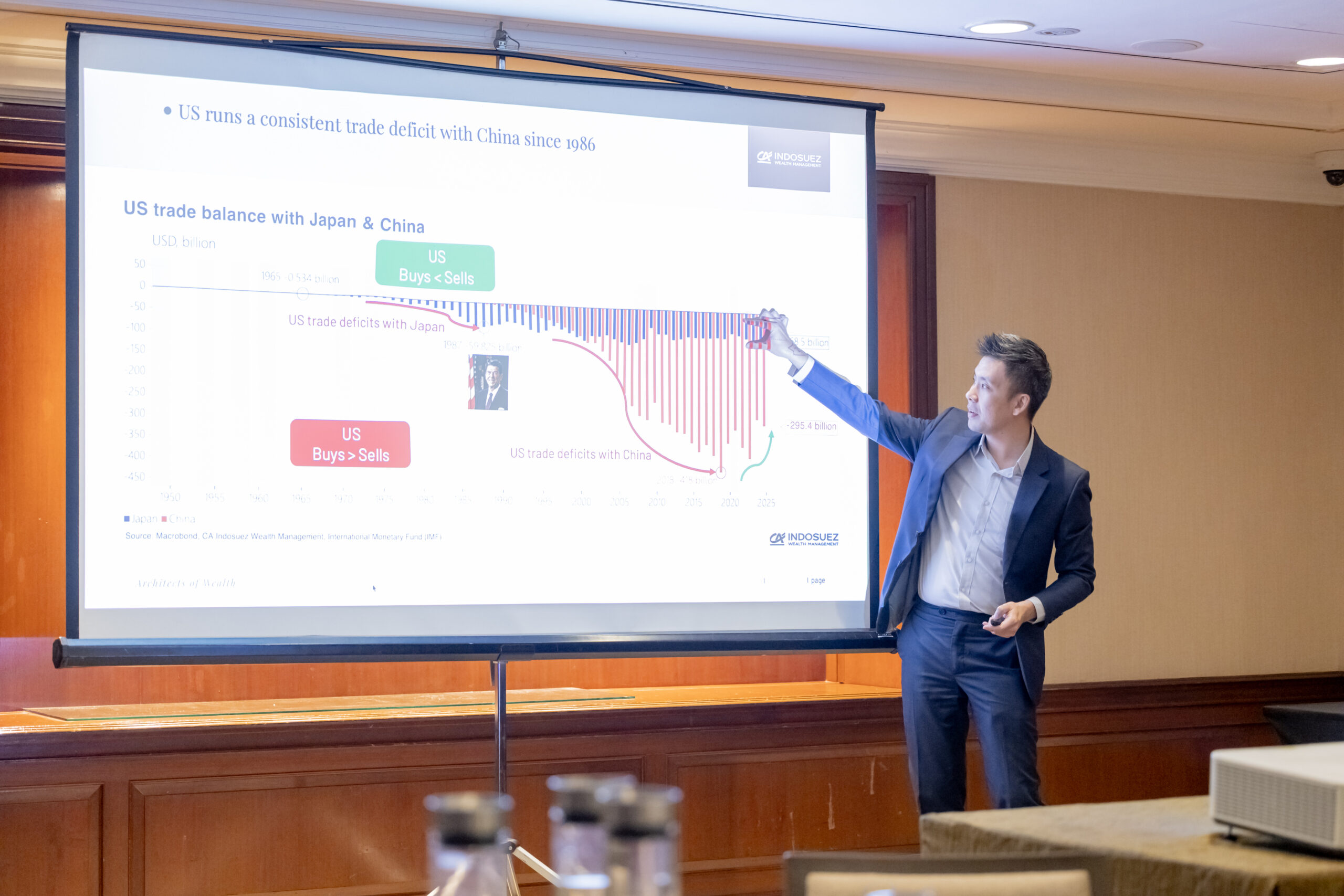 At our Economics Briefing, we discussed Southeast Asia’s role under the new global economic order. Our guest speaker, Chief Strategist, Asia, at Indosuez Wealth Management, Francis Tan opened the session with his views on the 5 key macrotrends shaping the global economic landscape. These included the impact of USA’s trade tariffs and competition from China on Southeast Asian growth enterprises.